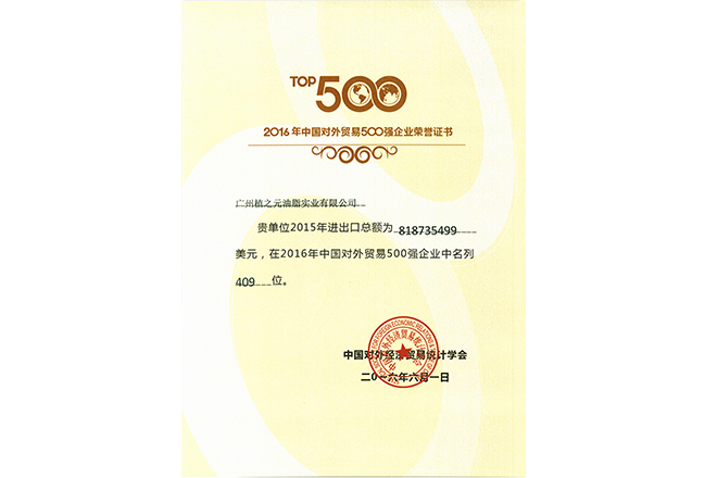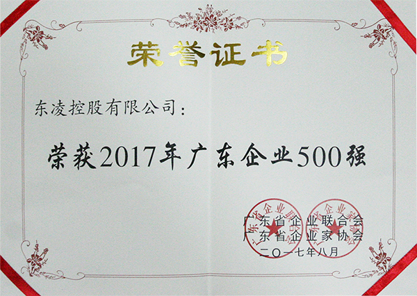 2017年广东企业500强证书